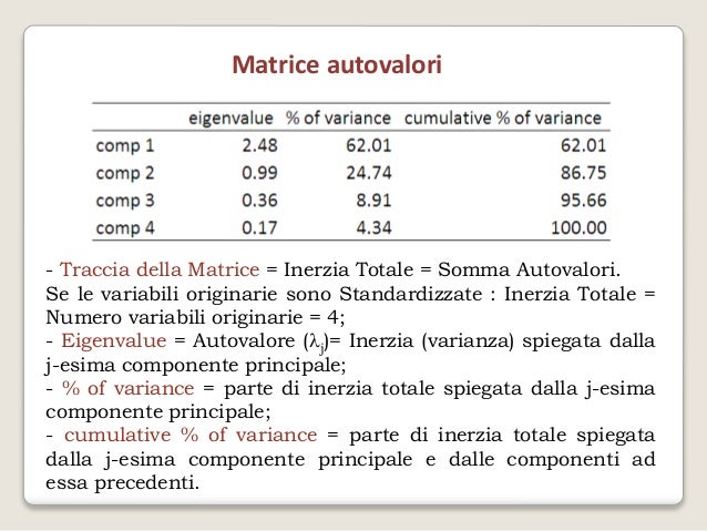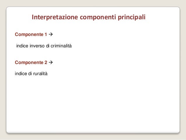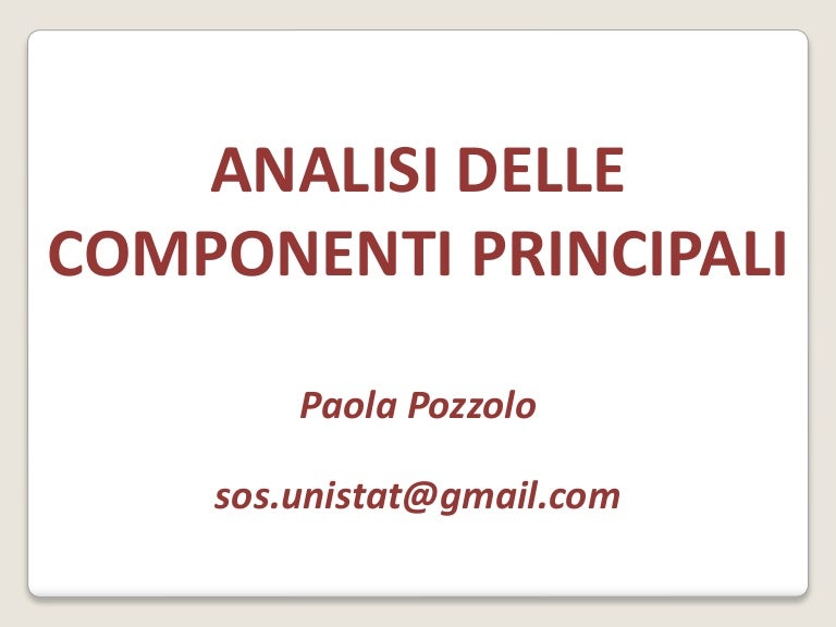 Analisi Componenti Principali Esempi Applicativi. 49 esempio applicativo le stesse cinque variabili dell'esempio iniziale, con due fattori estratte e 57 il metodo dei fattori principali è da consigliare, in sostituzione di quello delle componenti 62 l'analisi parallela consiste nel generare dei numeri causali, uno per ogni variabile osservata e per. L'analisi delle componenti principali (acp) consente di ridurre la dimensionalità dell'insieme dei dati eliminando la ridondanza di informazioni risultato di p variabili esempio di matrice di varianze e covarianze. Una lista di certo non esaustiva ma che riassume bene la trasversalità d'impatto di questo tipo di analisi: