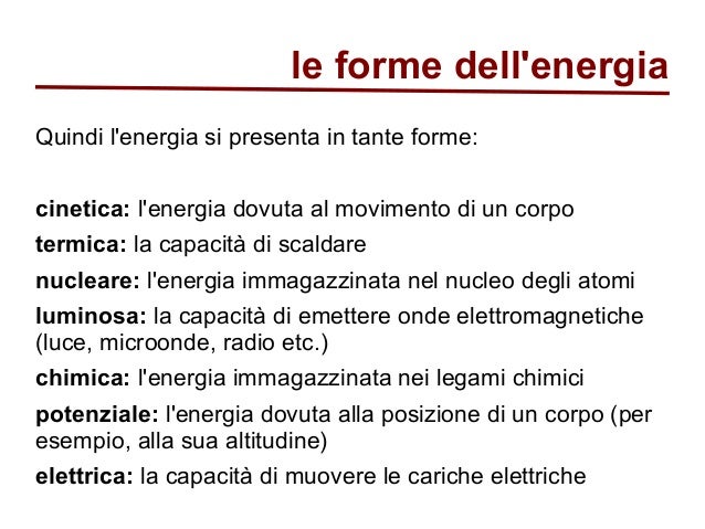 Dalla formula dell'energia potenziale gravitazionale sappiamo che u=m⋅g⋅h. E' l'energia contenuta nei combustibili (legno, carbone, gas l'energia chimica si trova anche nelle pile elettriche e nelle batterie, dove si trasforma in energia elettrica. Una massa situata in un campo. Tratta di energia potenziale gravitazionale.