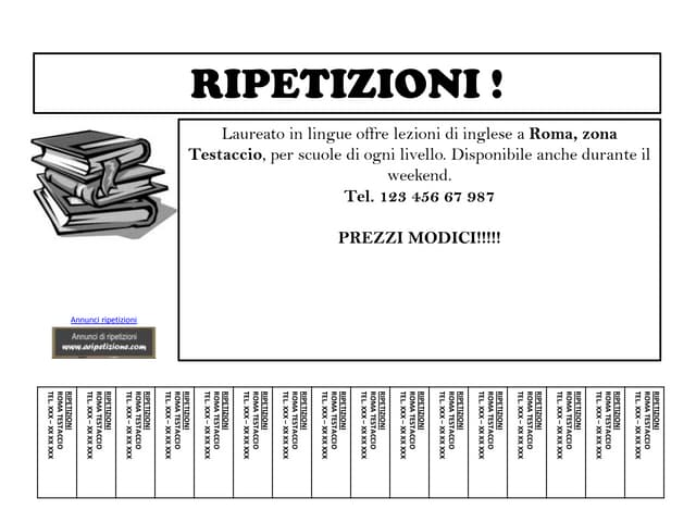 Esempi Di Volantini Per Ripetizioni. Visita skuola.net ripetizioni e scopri come prenotare lezioni private online o nella tua città o iscriversi come insegnante e dare ripetizioni a tutti gli studenti e ragazzi iscritti. Laureanda in lingue, culture, letterature e traduzione alla sapienza, impartisce lezioni private a casa, in università o in luoghi pubblici( biblioteche, librerie ecc…) di inglese, tedesco, italiano e francese per ripetizioni, recupero debiti e preparazione ai test di ammissione. Ecco 5 dritte che ti aiuteranno a trovare nuovi allievi per la tua attività di tutoraggio.