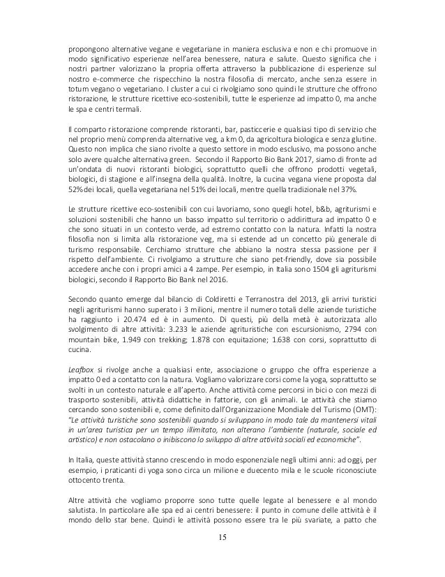 After all, you have a clear idea in your mind about what you want to achieve. Il business plan è un documento che serve a dare una definizione ad un determinato progetto d'impresa, individuando linee strategiche e obiettivi, e che il documento contiene un insieme di descrizioni (per esempio è descritto il business) di numeri (stato patrimoniale, il conto economico ed. 3:24 esprime in percentuale l'incidenza della remunerazione del capitale di. Altro esempio è un'azienda recentemente contattata per iniziare una partnership.