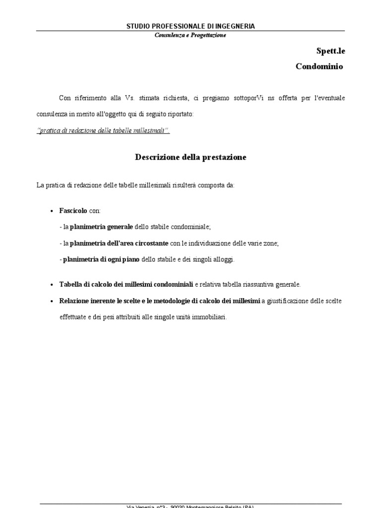 Esempio di redazione della tabella a. Le tabelle vengono allegate al regolamento di condominio, sono obbligatorie quando i condòmini sono in numero maggiore di 10, l'approvazione delle stesse avviene in le tabelle millesimali sono differenziate rispetto alle caratteristiche di ciascun condominio. Il calcolo delle tabelle millesimali è una procedura utilizzata di solito in un condominio, essendo fondamentale per la ripartizione delle spese. La tabella dei millesimi nei condomini è sempre stata intoccabile per i proprietari degli appartamenti dello stabile. Le tabelle millesimali costituiscono la base per qualsiasi ripartizione di spesa, all'interno del nota: