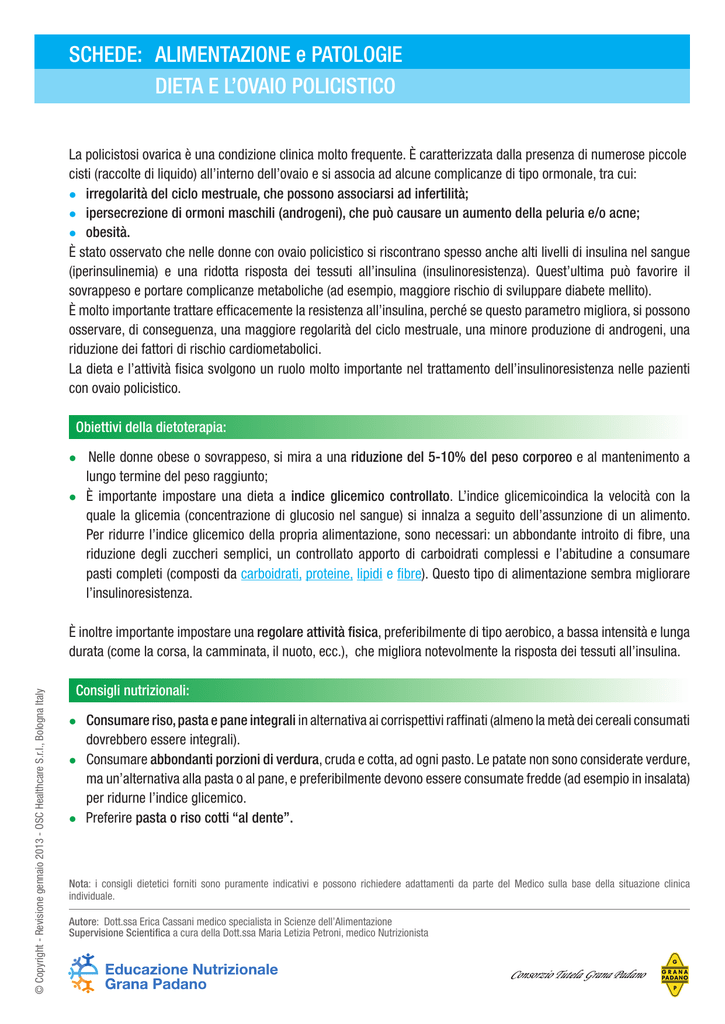 Cenni su ovaio policistico, compromissioni metaboliche e correlazione all'obesità e/o premessa ovaio policistico dieta per l'ovaio policistico esempio dieta contro la sindrome dell'ovaio policistico.
