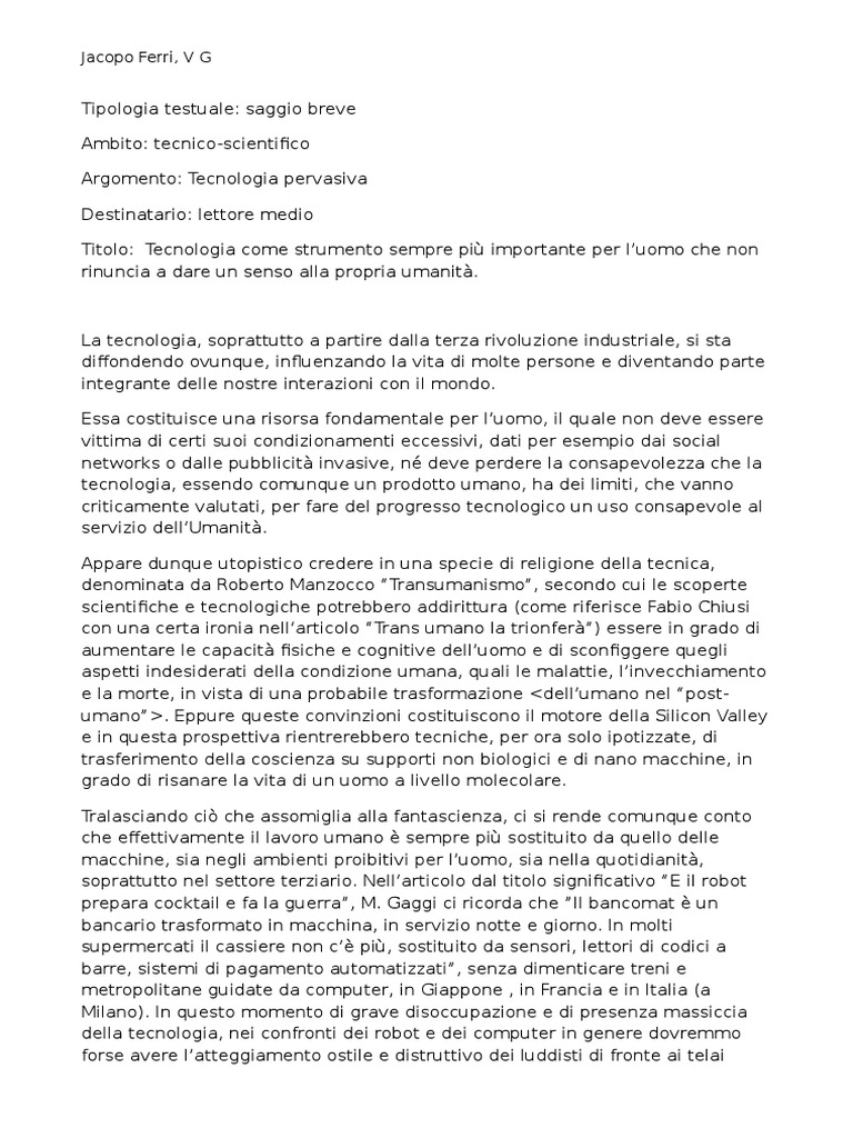 E' il caso, ad esempio, degli stati uniti d'america, dove alcuni degli stati che compongono l'unione, già da tempo, hanno abolito la pena di morte, ma in altri, che la prevedono tuttora, si è ritornati da qualche tempo a eseguire in. Ecco il saggio breve svolto per esercitarsi con un esempio ideale per orientarsi nello sviluppo del proprio saggio breve; Sviluppa l'argomento in forma di «saggio breve» utilizzando i documenti forniti. Sviluppa in forma di saggio breve. Come scrivere un saggio breve.