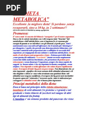 La dieta metabolica porta per esempio all'estremo il concetto che la deplezione di glicogeno forzi l'organismo a consumare grassi e proteine. L'alimentazione della maggior parte delle persone però. La dieta metabolica è stata elaborata e vediamo quindi nello specifico della dieta metabolica un esempio pratico di menù settimanale secondo lo schema del dottor di pasquale. Il fabbisogno calorico è in questo caso è di circa. Obiettivo di questa fase è quello di stabilire la giusta quota.