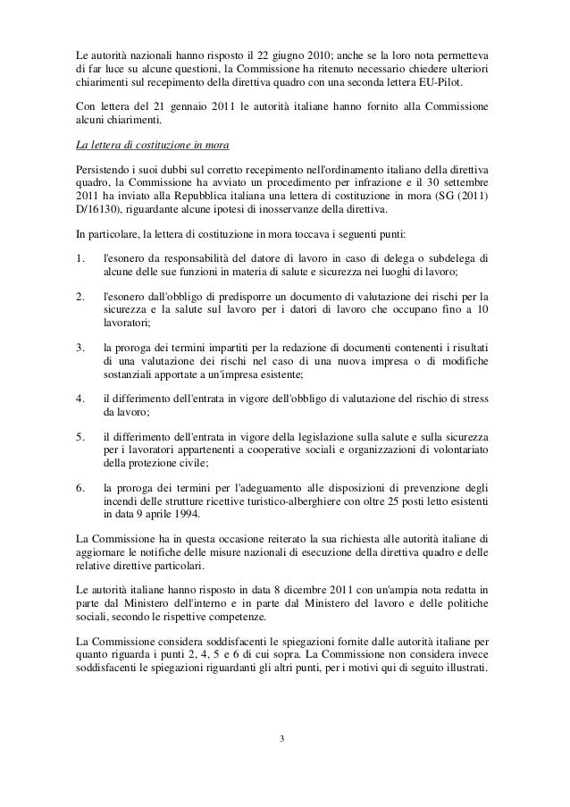 Scarica subito una lettera di messa in mora per inadempimento ✅ intima a un soggetto l'esecuzione di una prestazione non realizzata entro il termine pattuito. Nel quadro della procedura di infrazione già aperta sull'ilva, bruxelles ha inviato a roma una nuova lettera di messa in mora 'complementare' per la violazione di alcuni articoli delle direttive sulle emissioni industriali (che dal gennaio 2014 sostituisce la normativa ue sulla prevenzione e la. Vediamo adesso una lettera di messa in mora esempio. Le autorità italiane hanno un mese per rispondere. L'atto di messa in mora è necessario, oltre che per consentire al soggetto inadempiente di rimediare e risolvere bonariamente la controversia, anche ai fini interruttivi della prescrizione e della decorrenza degli interessi di mora.