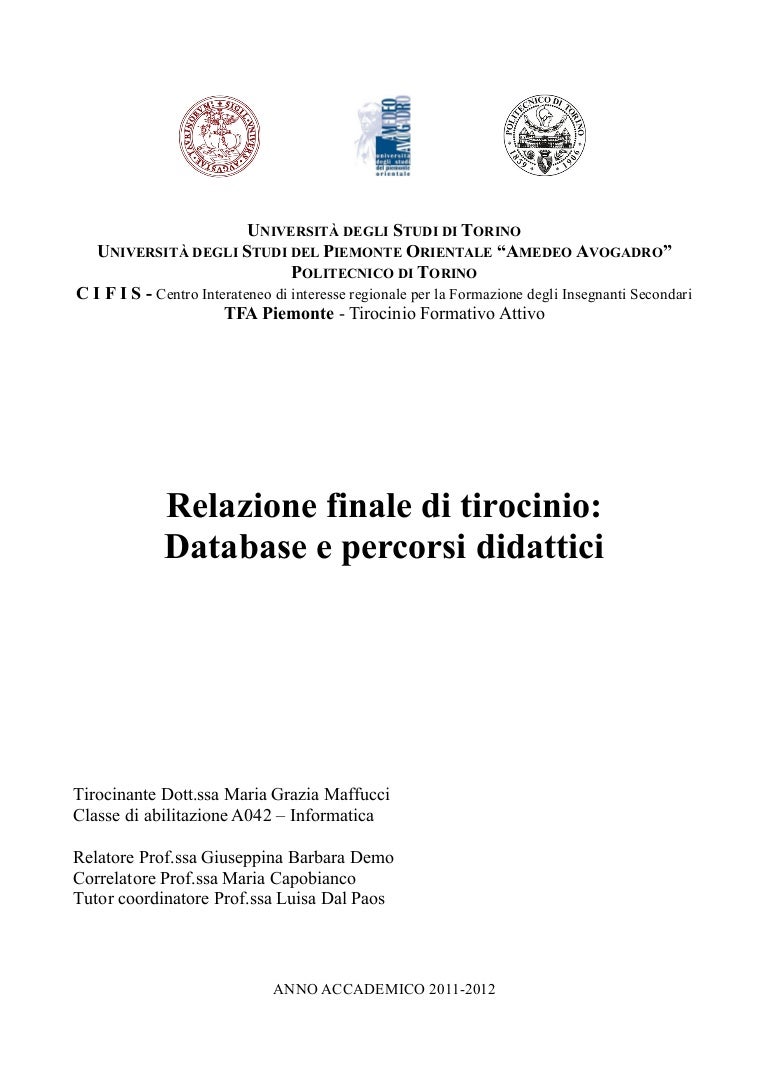 La relazione finale dell'anno di prova contiene tutti i dati relativi al servizio svolto dal docente neoassunto e quali attività formative ha seguito (art. Timbro e firma del tutor aziendale. I modelli e la relazione finale. La presente pagina contiene indicazioni di carattere generale, per le linee guida delle singole facoltà si rimanda alle pagine specifiche (menu di sinistra). I tutor, ad esempio, si trovano a dover redigere la relazione sul periodo di prova dei colleghi a loro assegnati e non dispongono in molti casi di modelli o schemi da seguire.