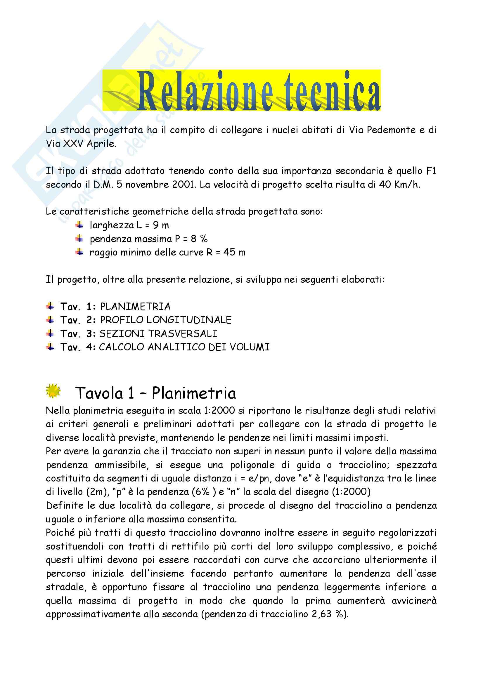 Esempio Relazione Tecnica Progetto Stradale. La progettazione stradale rappresenta uno strumento di intervento. Relazione tecnica progetto stradale, dispense di topografia. Il tratto di strada in progetto, si snoda nel territorio del comune.