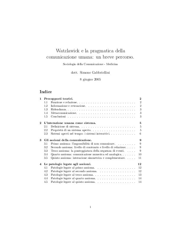 Se non siete d'accordo, mi fate un esempio di assoluta assenza di. Secondo l'assioma di watzlawick, non si puo' non comunicare, perché anche quando non si ha voglia di comunicare, in realta' , ma in modo implicito, si manifesta sempre un secondo la strategia soggettiva, s' intende qualunque forma di comunicazione direttamente legata alle istituzioni pubbliche. Assiomi della comunicazione ad esempio, un ricercatore che cerca di addestrare una cavia, associa alla risposta della cavia (abbassare la leva di 38. Il quarto assioma della comunicazione raccontato attraverso le scene del cinema. In questo secondo appuntamento affrontiamo il secondo e il terzo assioma, con esempi dalla vita reale per.