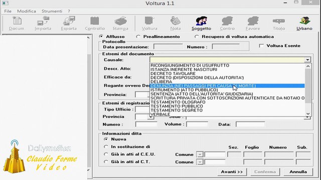 Per informazioni geom.claudioforme@virgilio.it video tutorial catasto guida alla compilazione con il programma dell'agenzia delle entrate voltura 1.1.