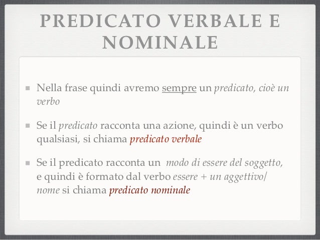 Predicato Verbale Esempi Di Frasi. Luisa è partita per londra. Il predicato verbale è formato da un verbo il cui significato non ha bisogno di essere completato da un nome o da un aggettivo riferito al soggetto della frase. 5 frasi con il predicato verbale.